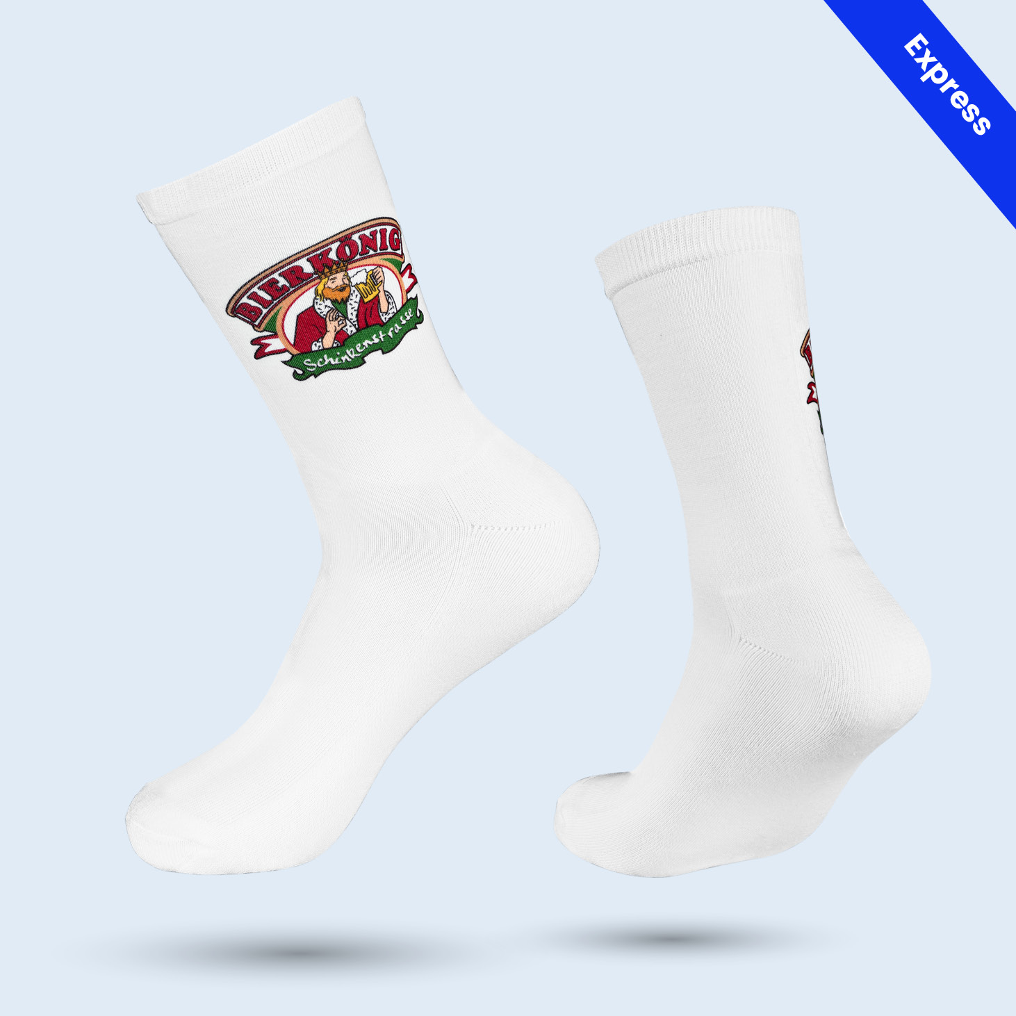 Production time depends on the model, quantity, and finishing – usually just a few days to weeks after approval. Printing socks is the fastest option for your project. With our own printing facility in Berlin and experienced partners in Europe, we can respond quickly and flexibly – even for short-term projects. Please contact us regarding current production capacity if you have tight timelines.