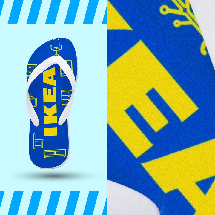 Dein Branding auf den Punkt gebracht: Wir bedrucken die Riemen der Flip Flops mit Logos oder Slogans in 1C direkt. Entweder einseitig oder beidseitig – je nach Budget und Timing. Somit ist das Logo auch beim Tragen perfekt zu lesen.